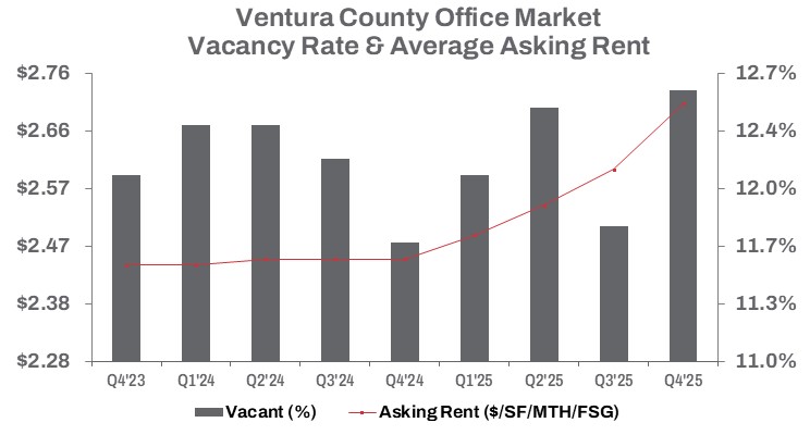 Ventura County’s office market is entering 2026 with sublease availability shaping tenant strategy and investment activity signaling ongoing recalibration. Tenants seeking value will continue to find opportunities in buildings with vacant sublease space, where competitive pricing and longer remaining lease terms create cost advantages compared with direct space.